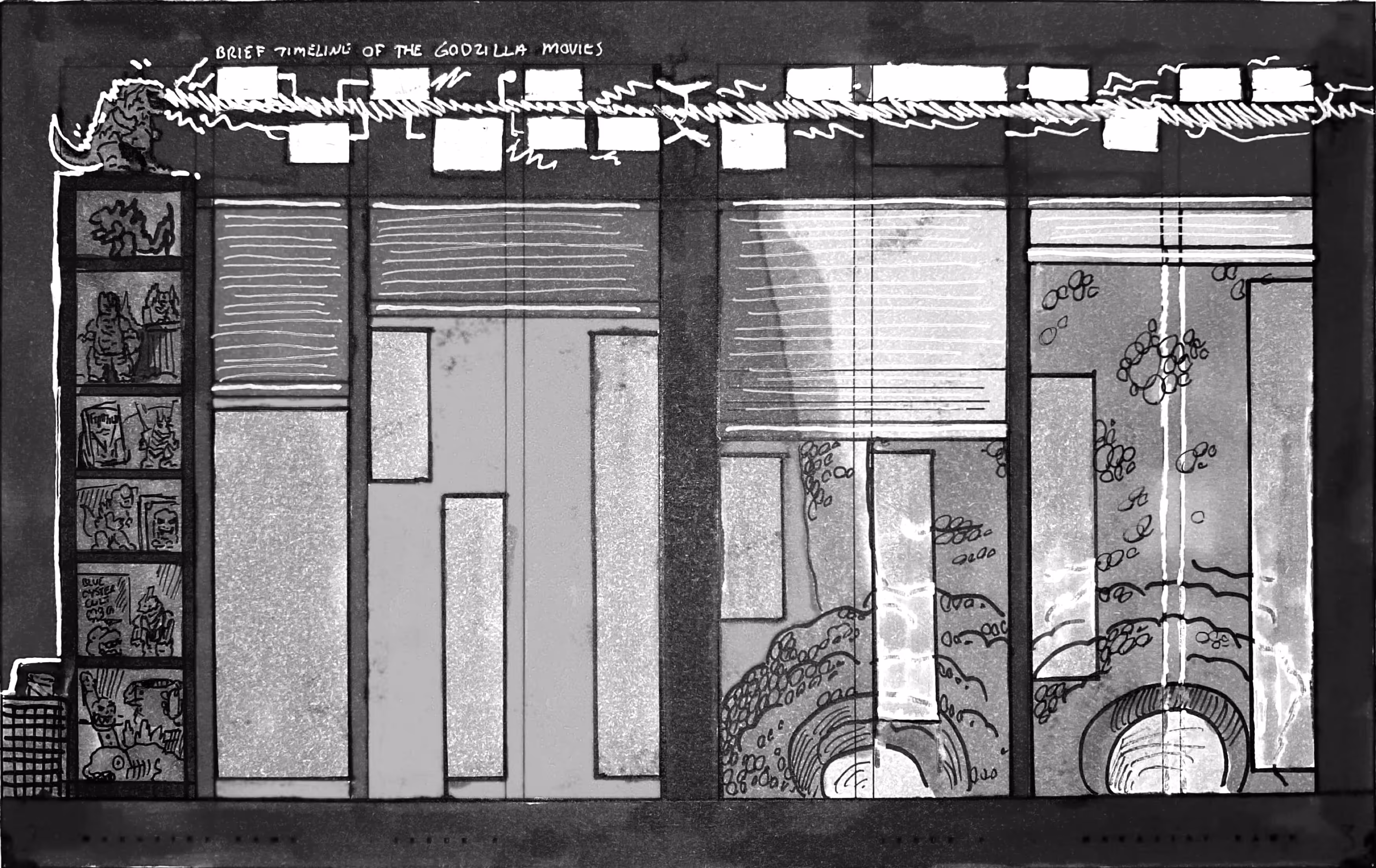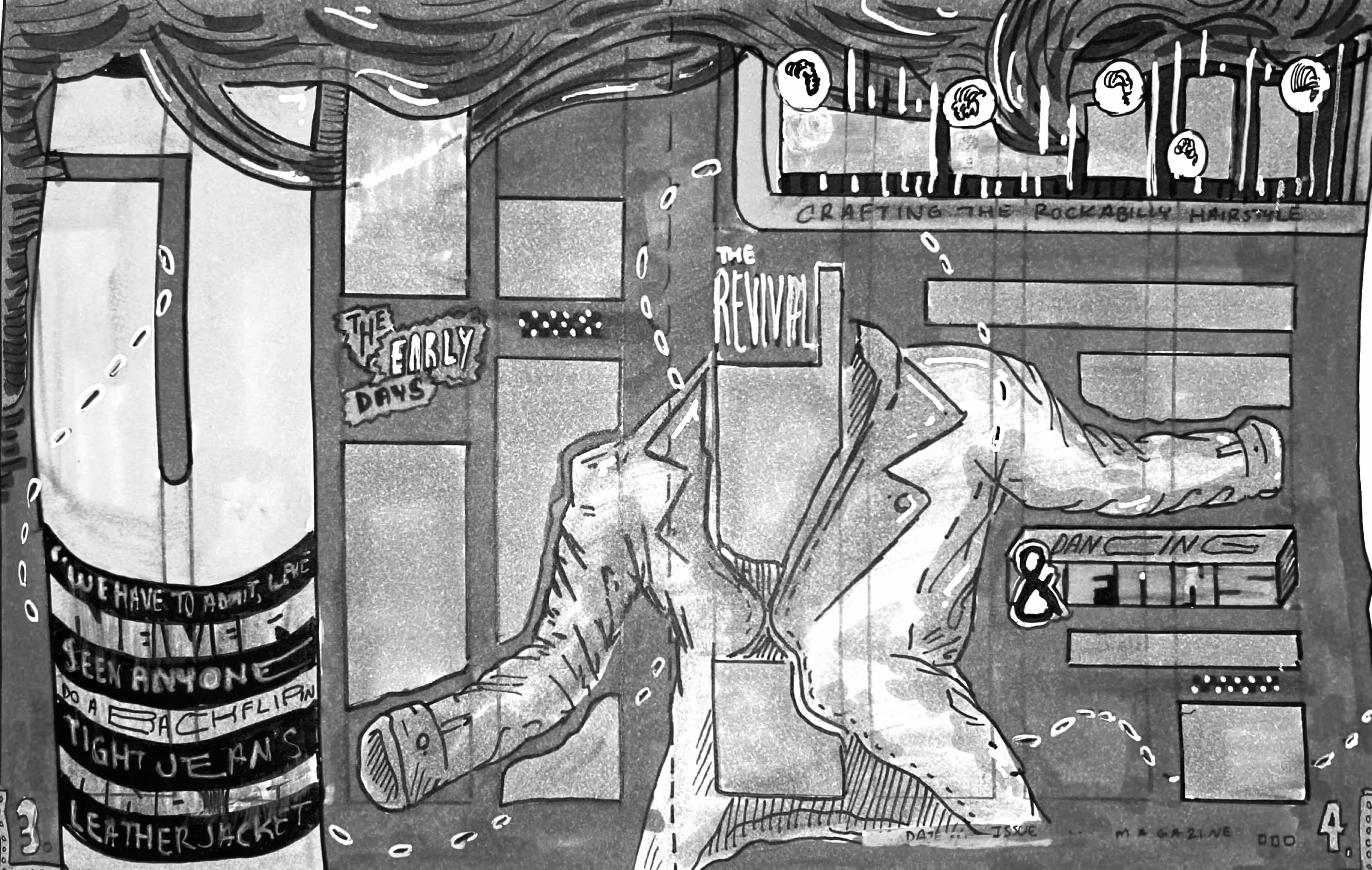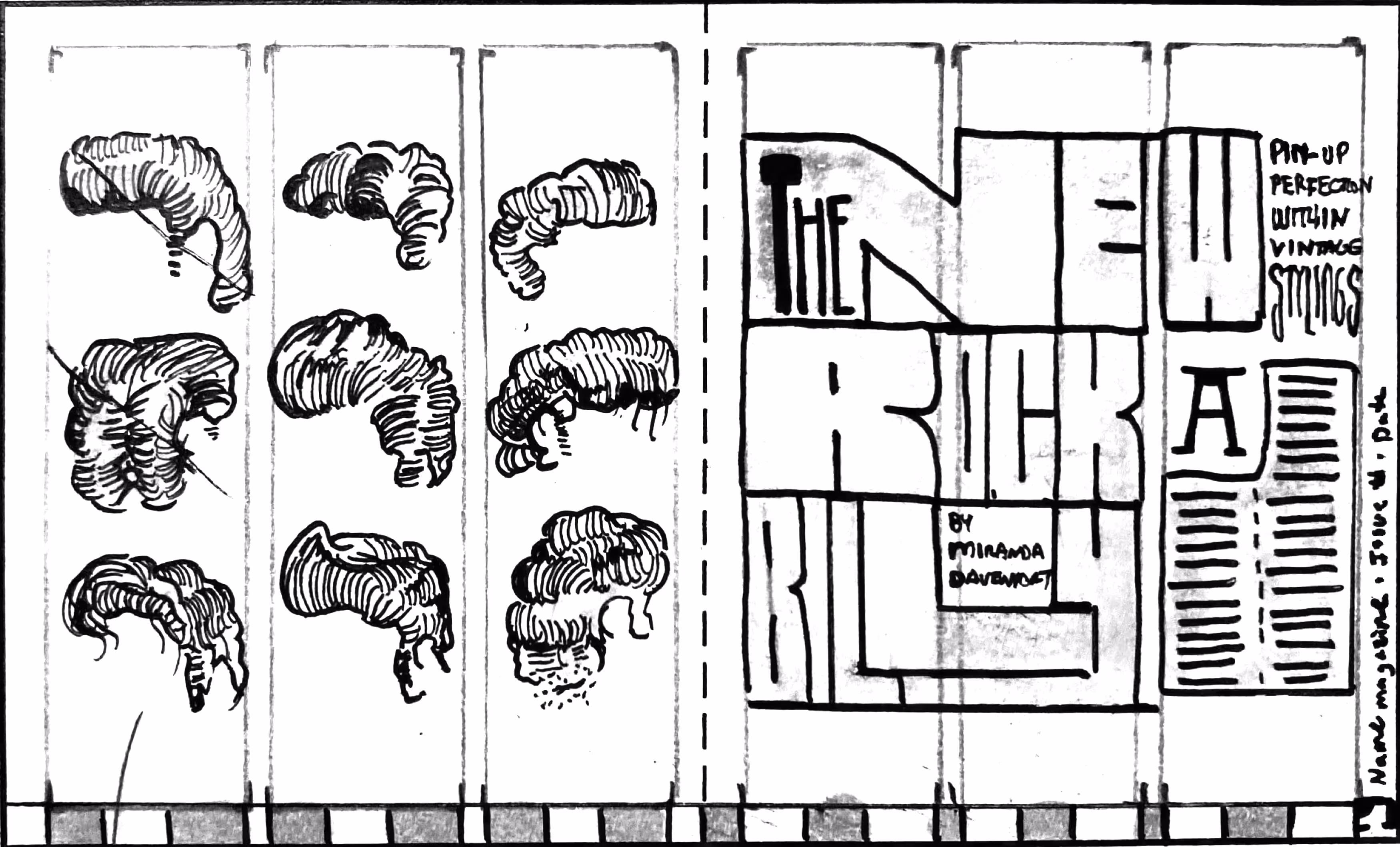 Early thumbnails established the layout direction for the primary spread, The New Rockabilly, refined across several iterations before artwork creation. The secondary spread, Breaking Down Godzilla, underwent the same process, pairing a strong visual opener with its corresponding article spread.