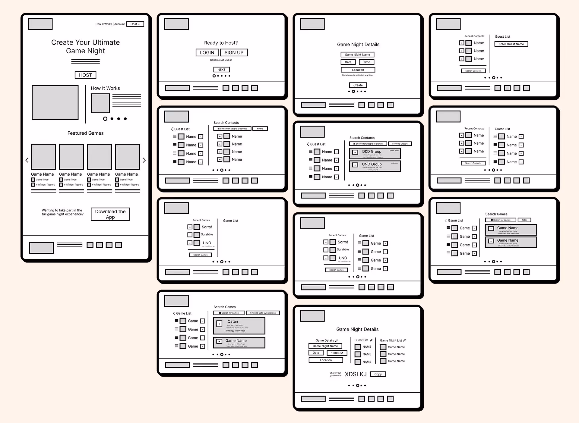 The interface evolved through multiple iterations, condensing original screens into a streamlined system focused on efficiency and clarity. User testing informed interaction refinements and accessibility adjustments, ensuring that features like guest profiles and game recommendations felt natural and intuitive.